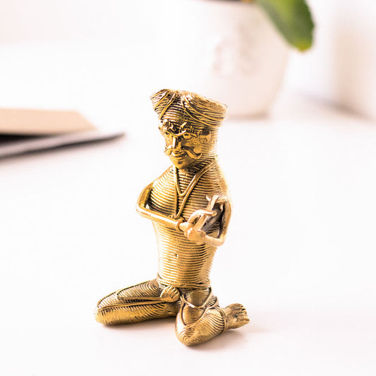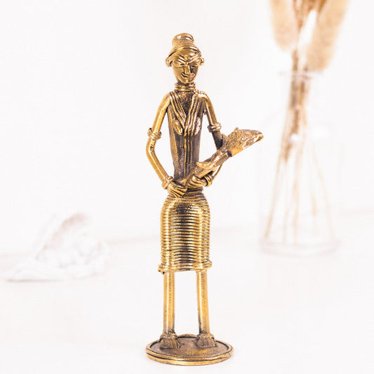 A Leisurely Read Handmade brass figurine in Dhokra art