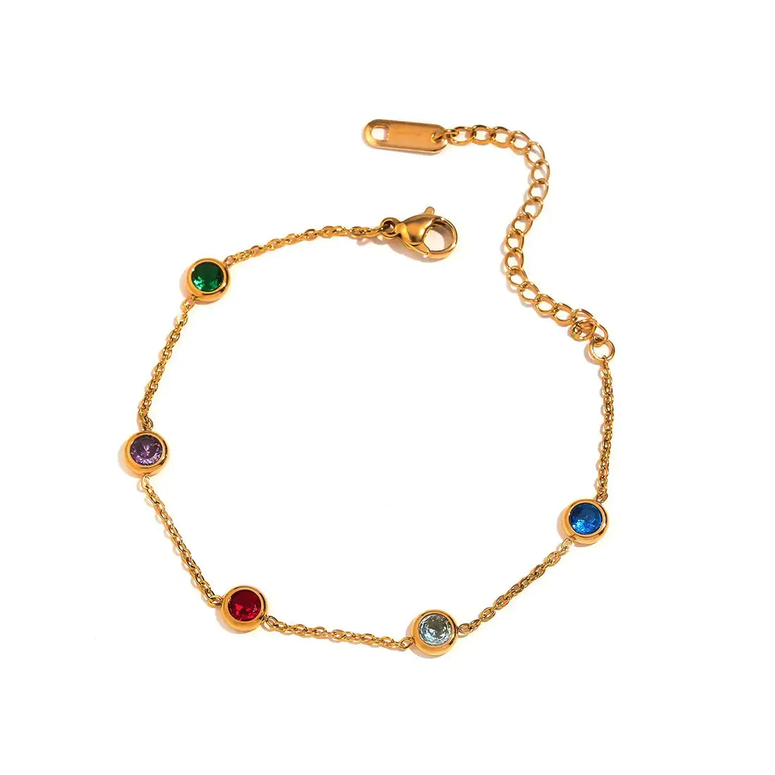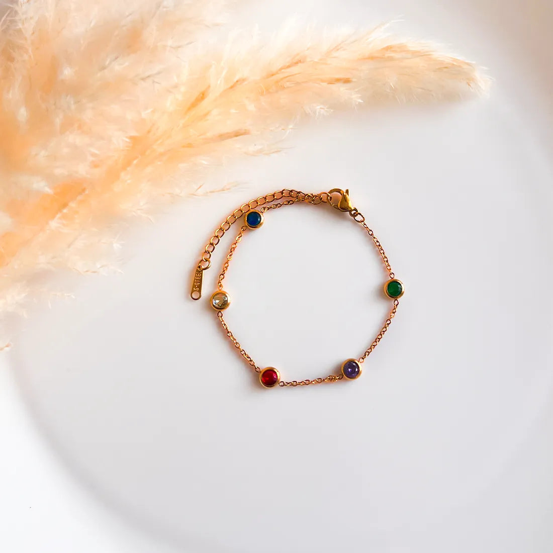 Luminous Gems-armbandet är tillverkat med högkvalitativa naturliga kristaller och har en missfärgningsfri PVD 18K guldpläterad yta, vilket gör det vattentåligt och hållbart för dagligt bruk.